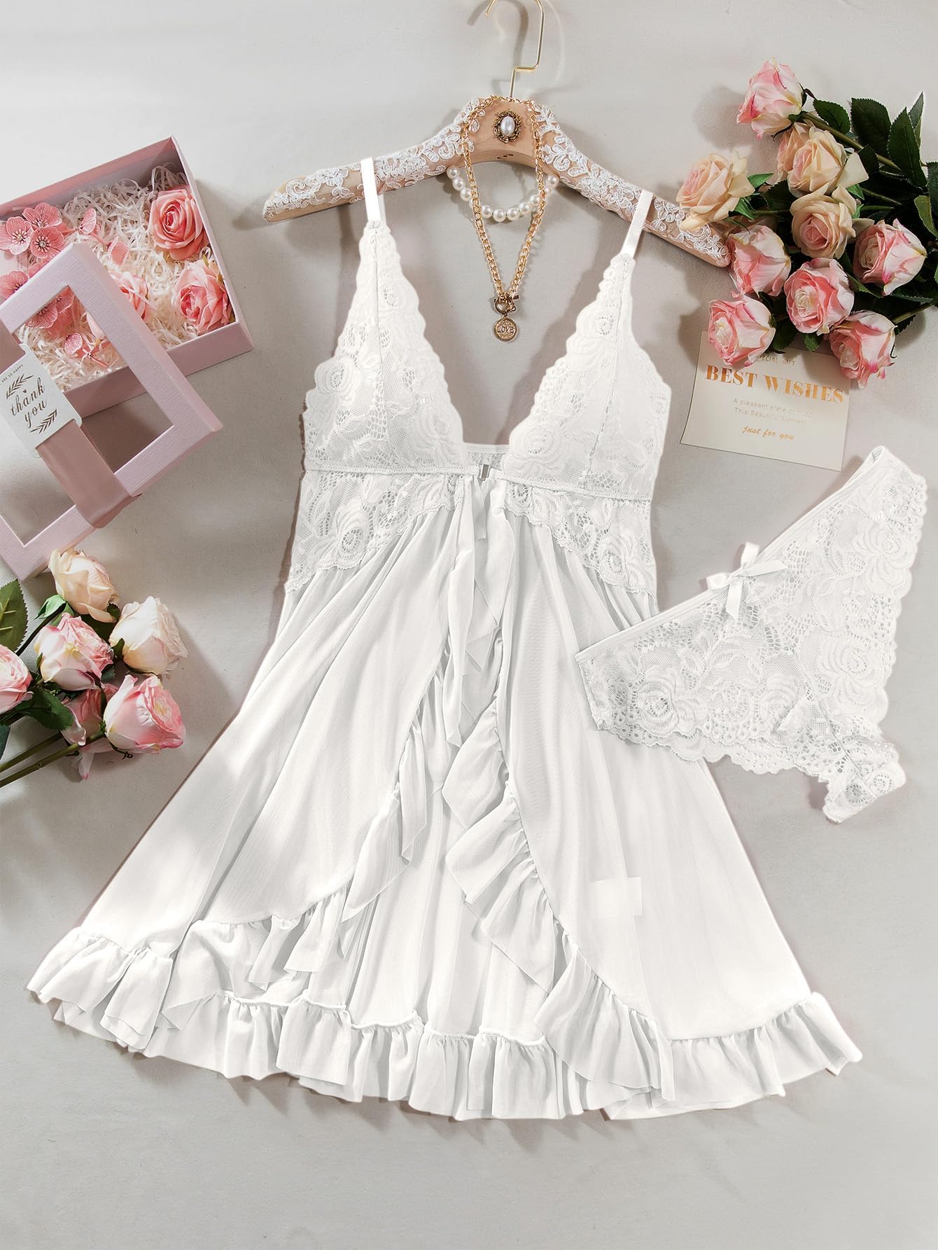 ✔️ Gennemsigtigt mesh & blomsterblonde – forførende, elegant og feminint